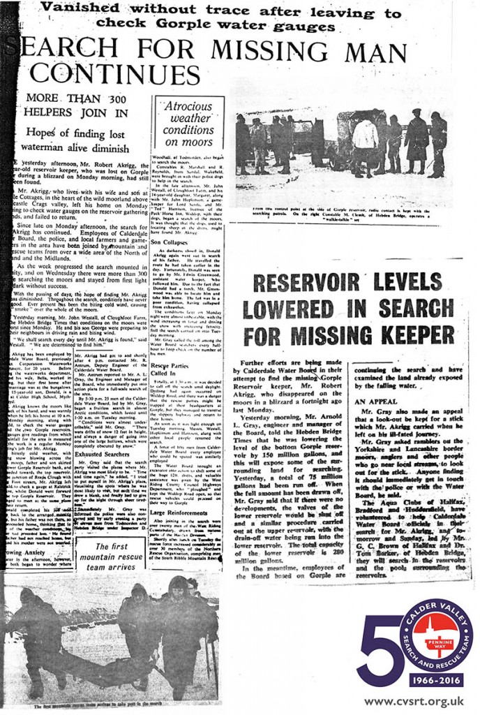 Calder Valley Search and Rescue Team was formed after a major search by police, farmers, estate keepers and rescue team members from across the North of England in an operation to try to find Robert Akrigg.