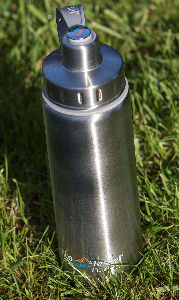 There’s a knack to unlocking the bottle: unscrew the lid and press the top until the bottom pings out and then it can be filled. Once filled with liquid, it won’t collapse, even though it looks like it should! The bottle remains rigid. To drink from it, unscrew the lid and hold the top. Obviously, if you squeeze the body of the bottle, it’s likely to eject the contents more rapidly than you want.
