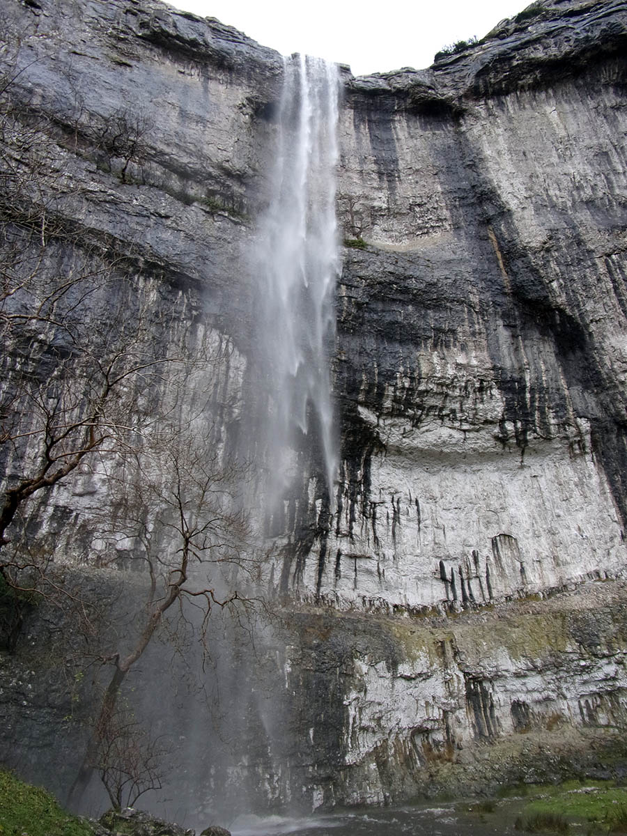 The water flowed from Malham Tarn down Watlowes, which is usually a dry valley, before pouring over the limestone pavement on the top of the Cove.