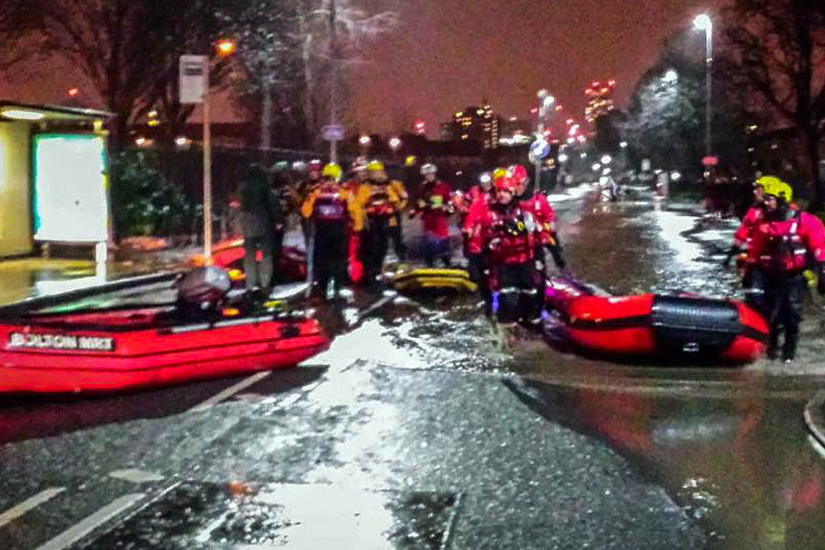 Edale, Derby, Glossop, Bolton, Bowland Pennine and Rossendale and Pendle Mountain Rescue Teams all took part in the evacuation of residents in Salford.