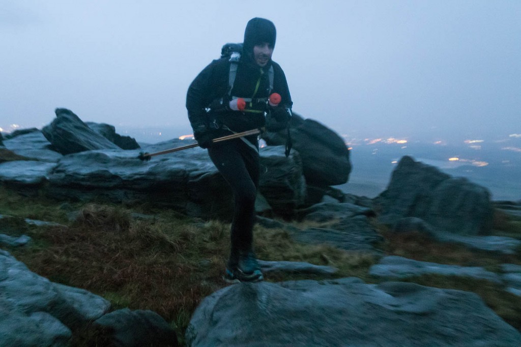 The runners in The Spine Challenger set off from Edale at 7am on Saturday, heading north for 174km (108 miles) along the Pennine Way. As the runners approached Yorkshire at nightfall, heavy rain lashed the competitors, and with dropping temperatures, the rain turned to snow as the night progressed.