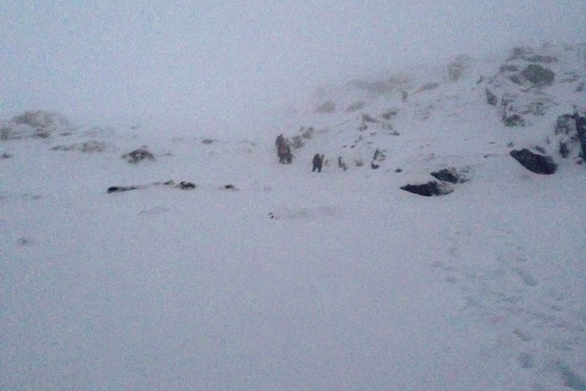 “Team members experienced full winter conditions on Snowdon with snow nearly thigh deep in places and crampons required where the snow was wind scoured or compacted by the passage of feet.