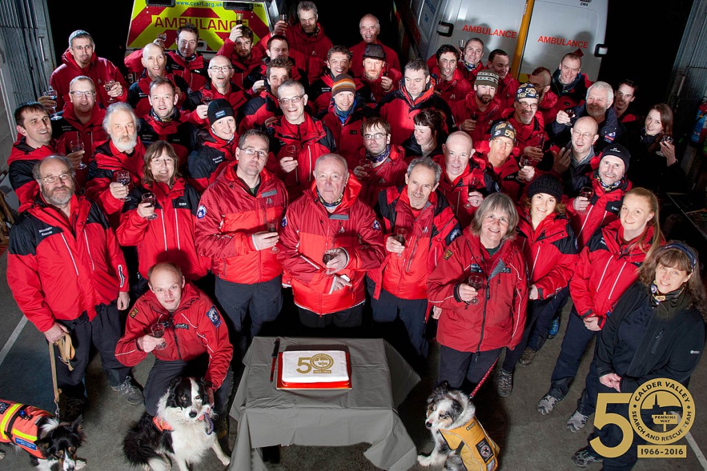 Calder Valley Search and Rescue Team members get the anniversary celebrations underway. Photo: Tony Hanners