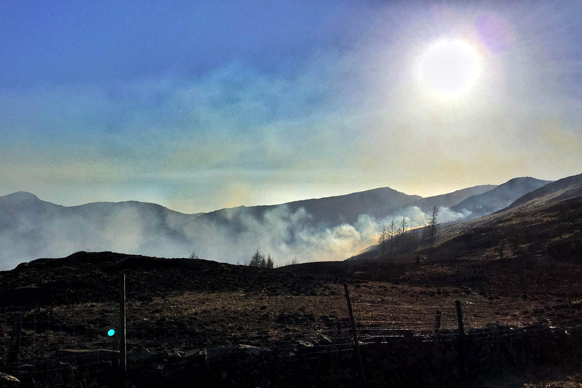 Cumbria Fire and Rescue Service requested the help of Keswick Mountain Rescue Team when they were called to tackle a large grass fire on the slopes of Grange Fell, Brund Fell and Joppelty How in Borrowdale on Wednesday.