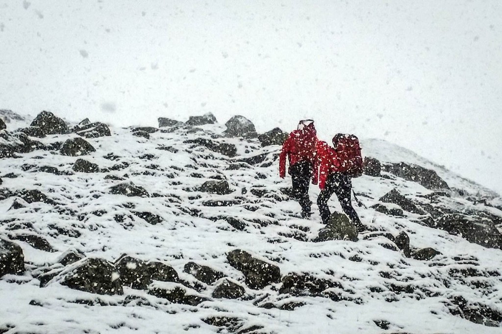 Rescuers on the fell in blizzard conditions during the operation to find the two women. Photo: Keswick MRT