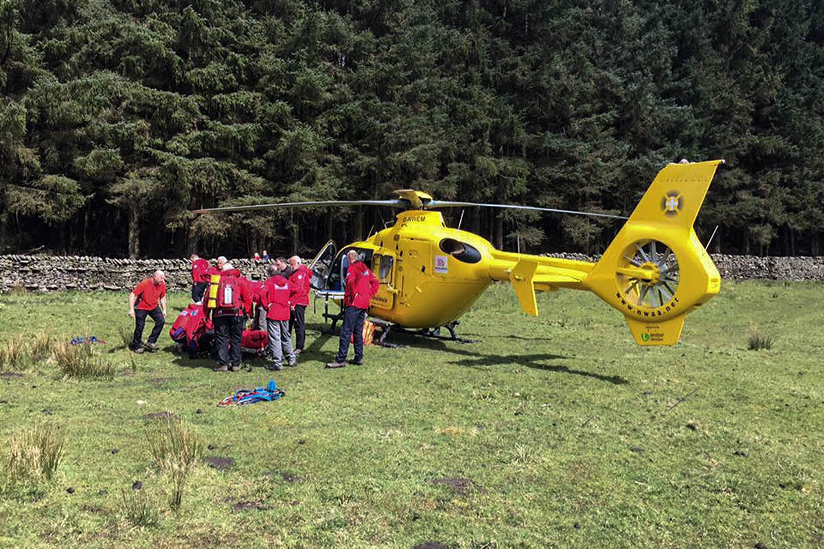 The Barton-based North West Air Ambulance also flew to the scene and team members joined helicopter crew in treating him before he was stretched to the aircraft and flown to hospital.
