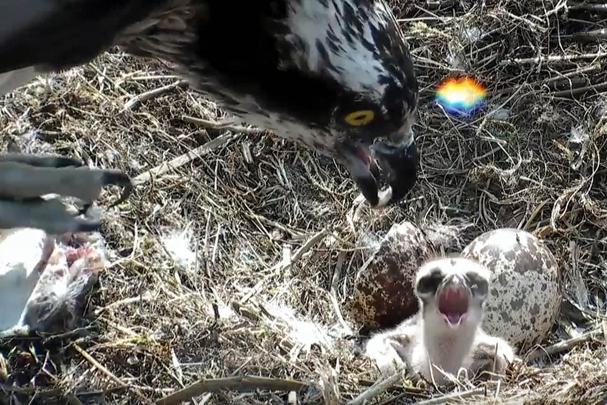 “Earlier in May viewers of the live-streaming nest camera were left aghast as they watched an intruding osprey trample all over the eggs.