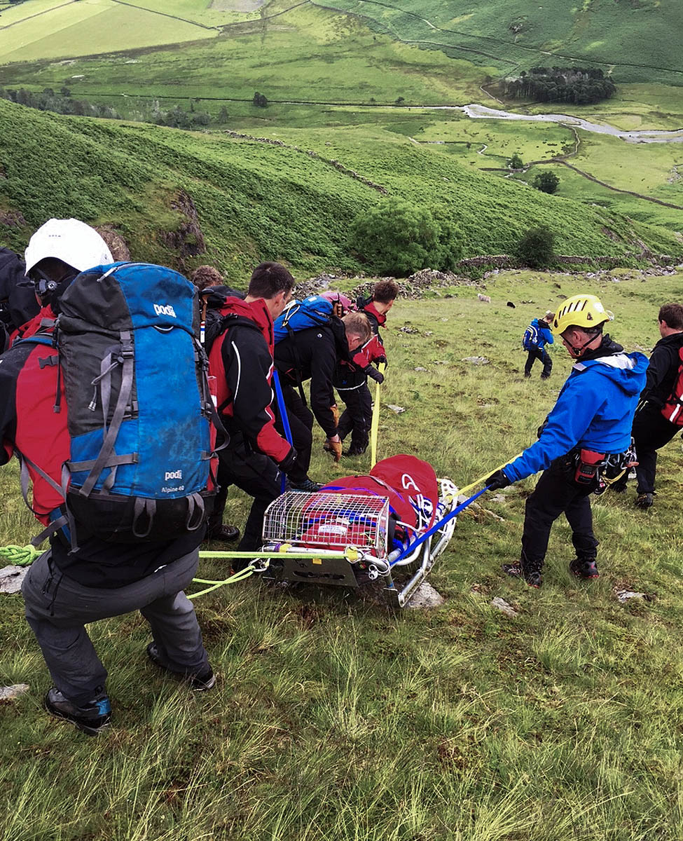 “Cockermouth MRT, supported by members of an RAF Mountain Rescue Team from Leeming who were training in the area, evacuated the lady by stretcher to a waiting ambulance.”