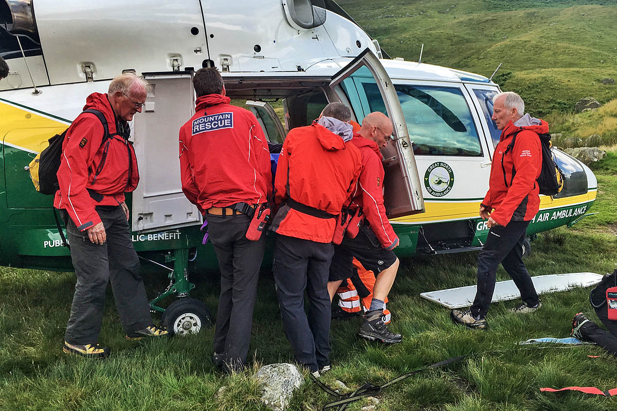 “After eight of us loaded him into Helimed 58, he was flown to the Cumberland Infirmary for treatment, for which we were very grateful, as we foresaw a very lengthy extraction from the hill.”