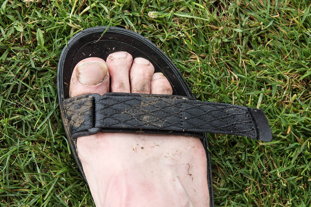 We tested the sandals in the dry and the wet. The front strap protruded markedly when fully tightened. Photo: Bob Smith/grough