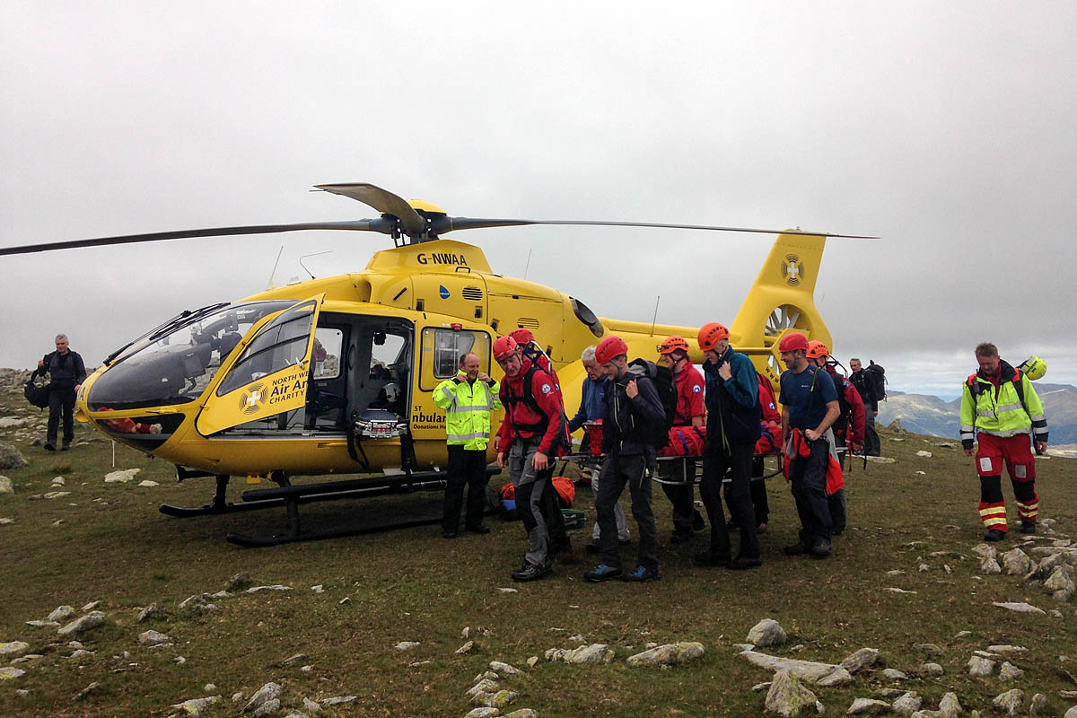 A team spokesperson said: “The casualty was located just below Prison Band with help from two members of neighbouring Duddon and Furness Mountain Rescue Team who were in the area, and the air ambulance from North West Air Ambulance was able to fly in and land on the summit ridge.