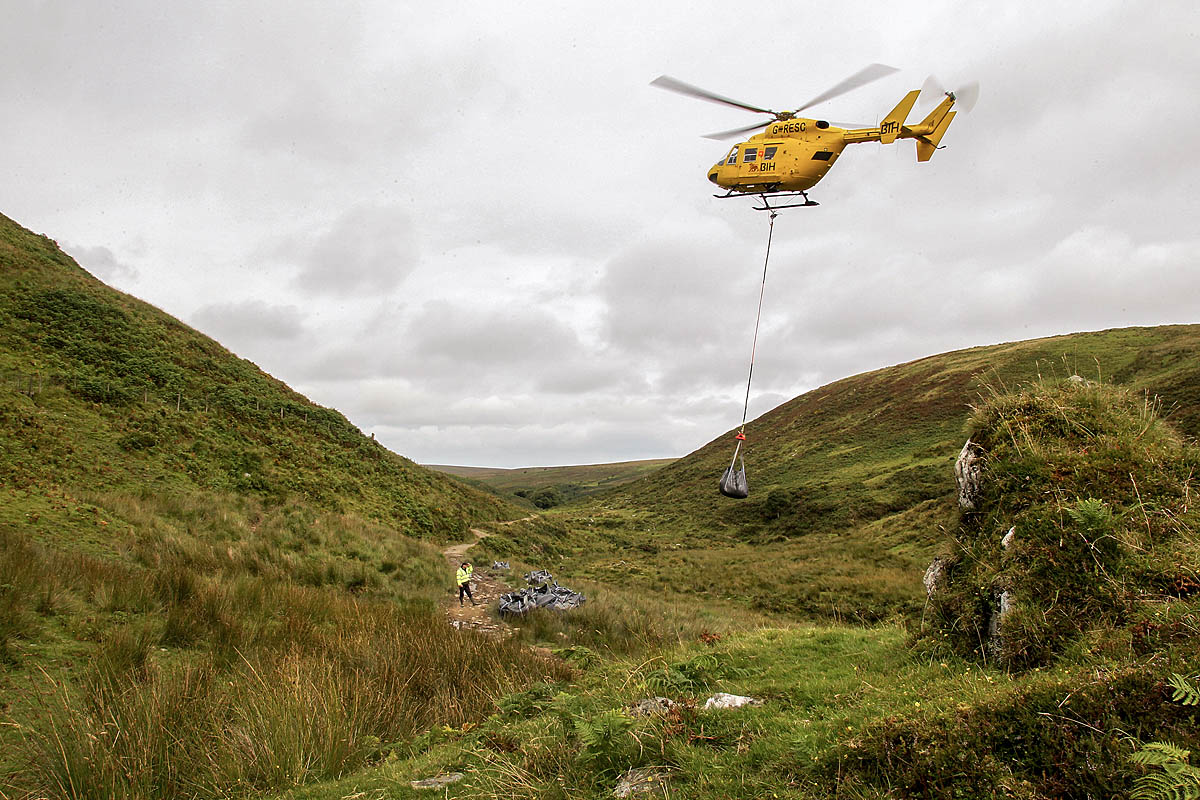 “To repair a path we would normally use material that is on site but in this case there was simply not enough suitable material for the scale of the job. Because of its remote location a helicopter was the most efficient way of getting it there.