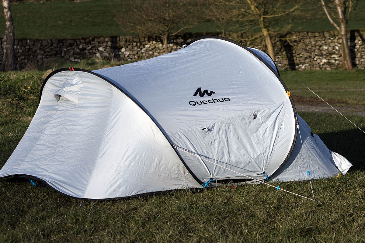 The tent kept out the rain and was reasonably stable in wind, and Quechua say the 2 Seconds 2 Fresh and Black is good for use in winds up to about 30mph.