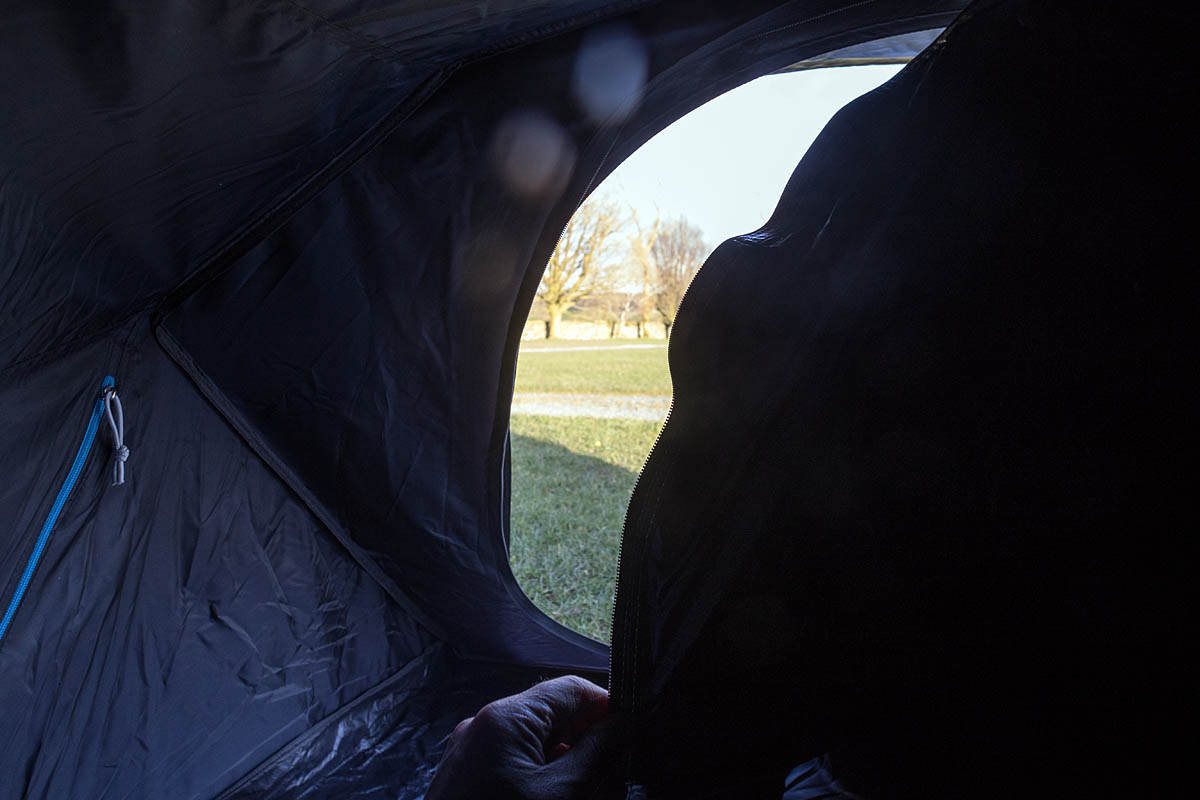 Reaching for the zip at the bottom of the outer door is quite a stretch when opening up the tent in the morning.