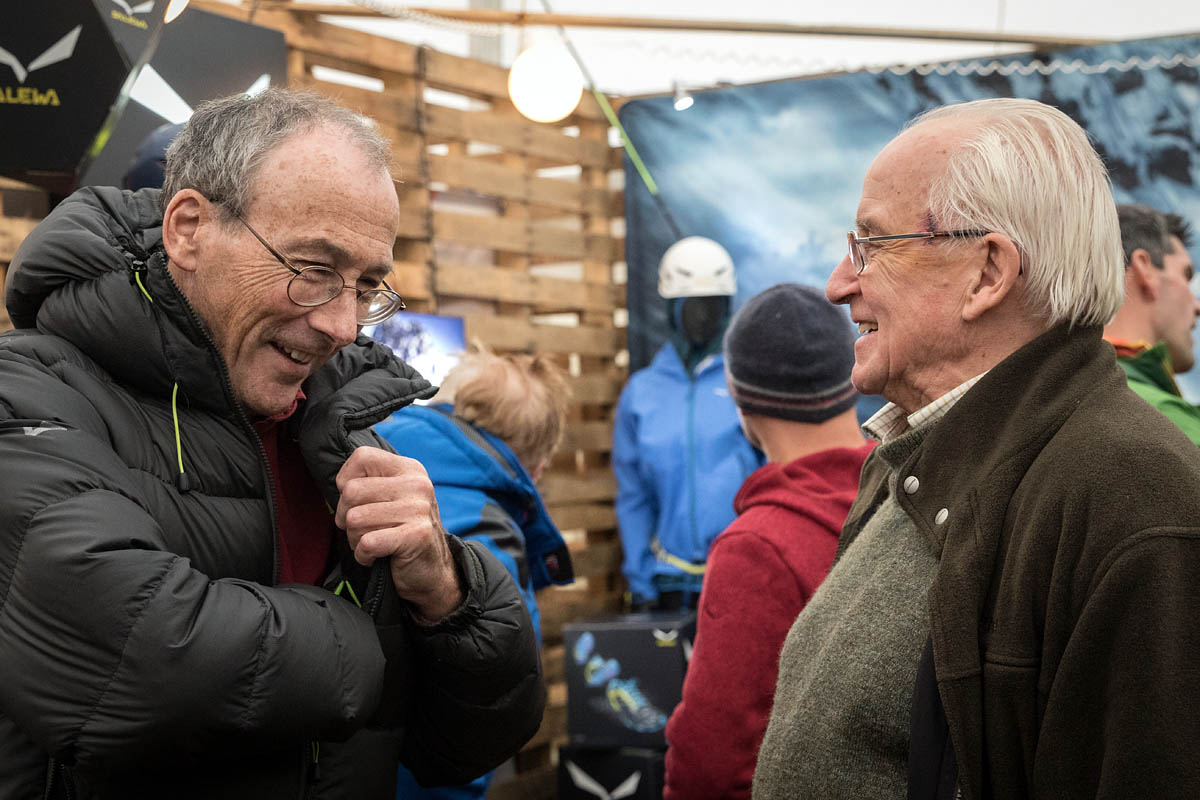 You never know who you might bump into at the festival. Everest summiteers Stephen Venables, left, and Doug Scott in the Base Camp tent. Photo: Bob Smith/grough