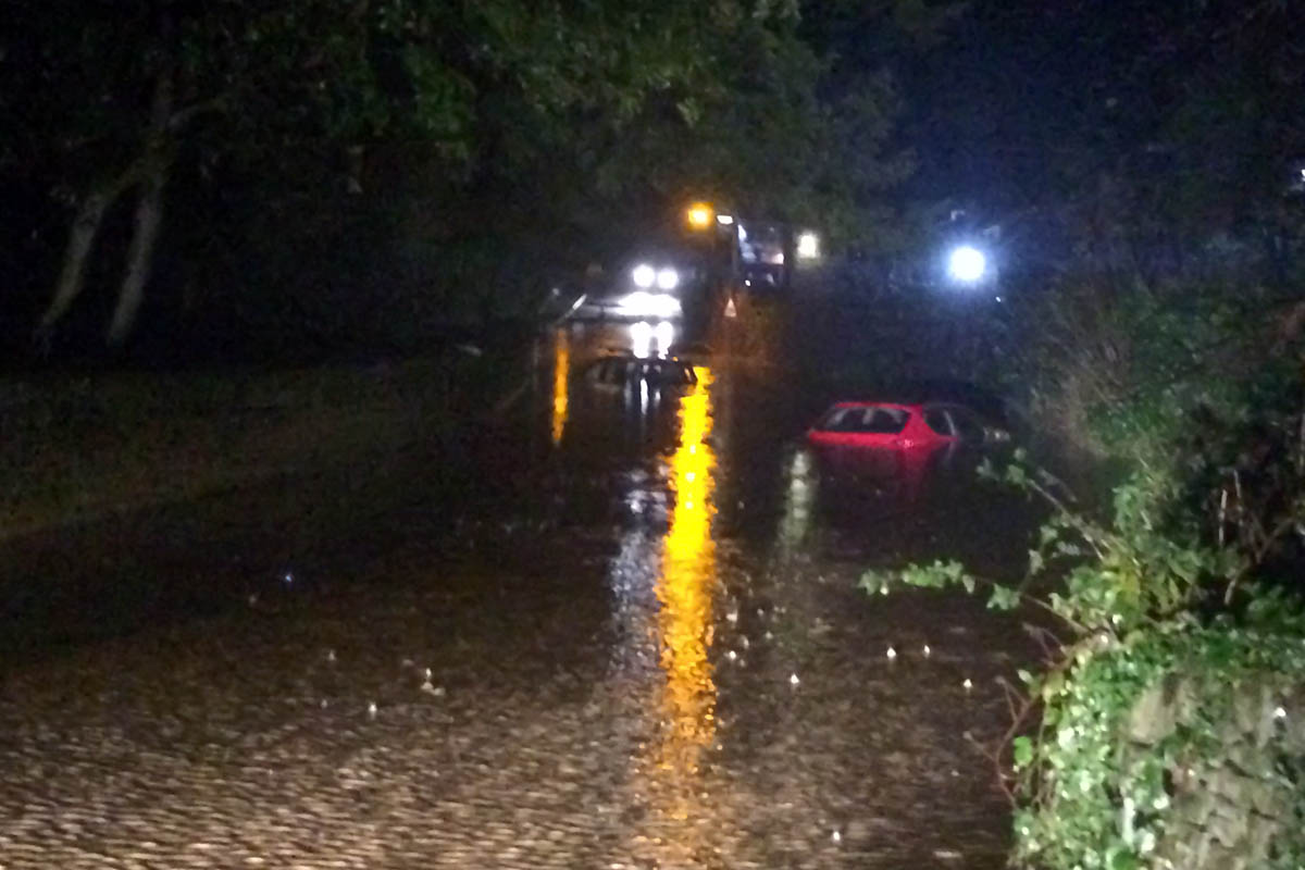 “On arrival at School Lane, our two members were confronted with chest deep flood water.
