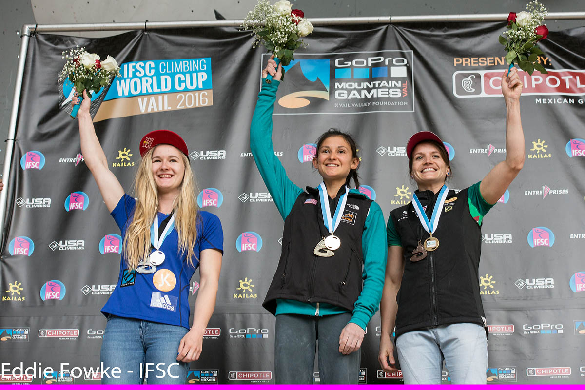 A rising young star of the climbing world urged other women to try the sport.