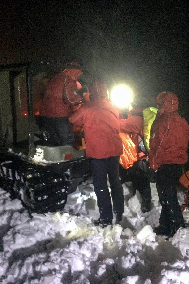 At one point rescue team members were forced to crawl through drifts as high winds and blizzards swept the hills.
