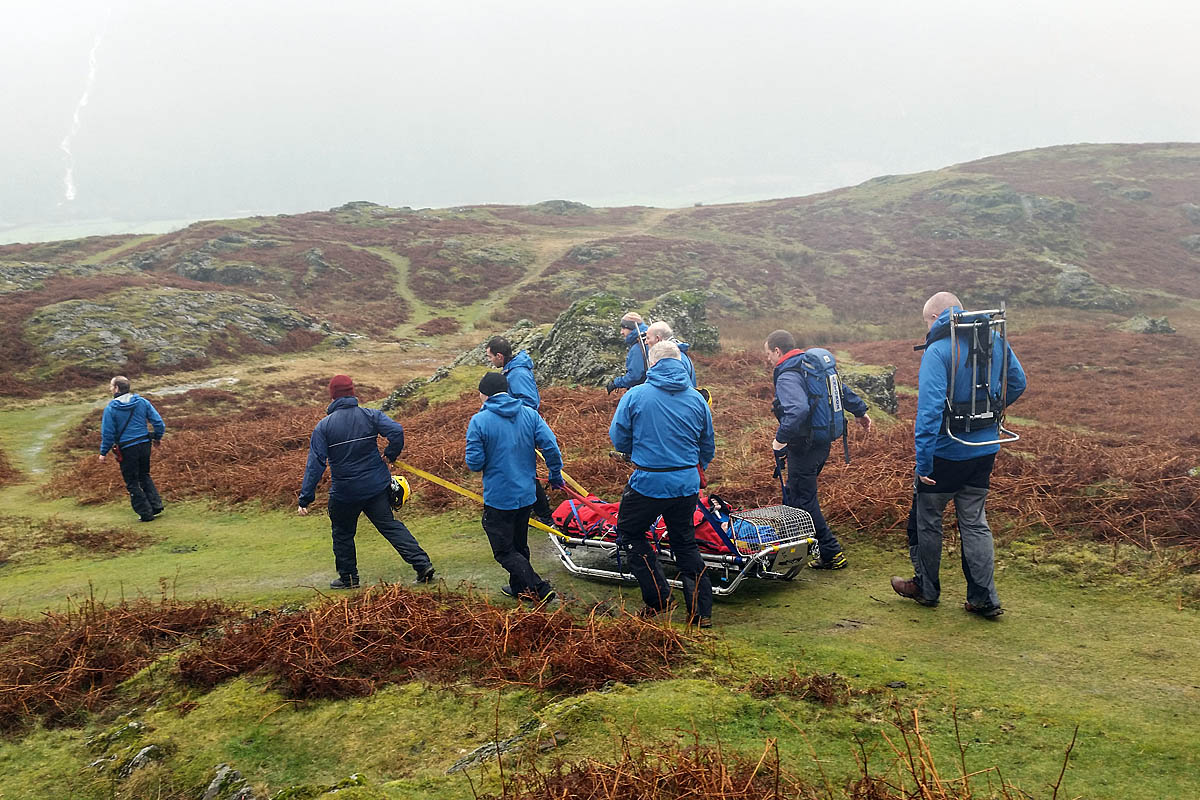 The team treated her at the scene before stretchering her from the fell hill and handing her over to an ambulance crew at Buttermere.