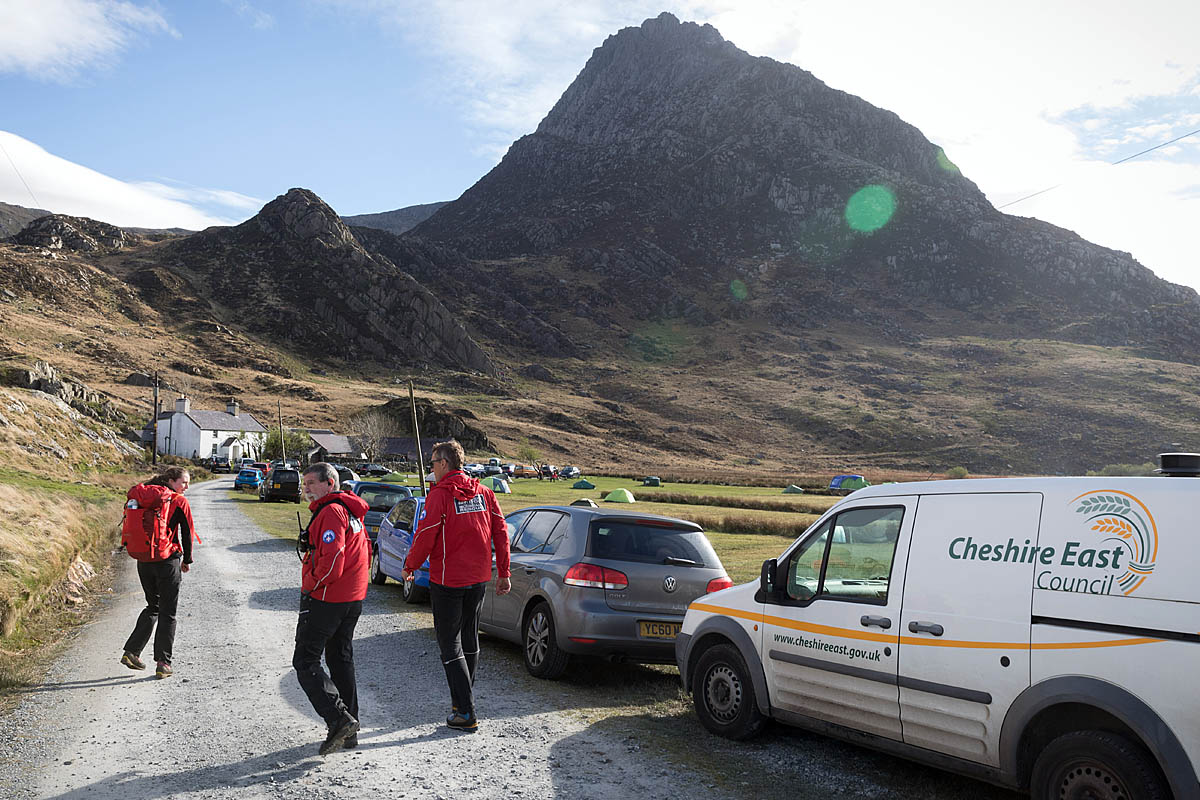 Members of the Ogwen Valley team make their way to the scene on Tryfan Bach, centre left. Photo: Bob Smith/grough