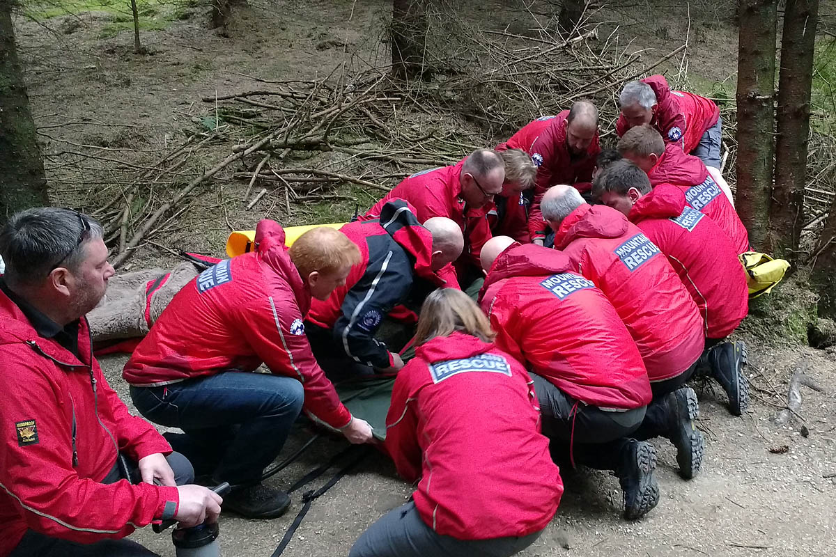 “Carrying out immediate casualty care and placing him in to a vacuum mattress, the rescue team then loaded him on to a mountain rescue stretcher and carried him to the nearby air ambulance which had flown from Manchester.