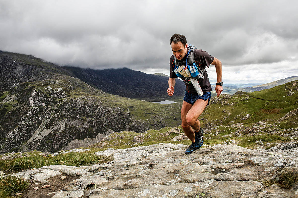Jim Mann heads away from Pen-y-Pass at the start of the Snowdon horseshoe during the 2015 race. Photo: Ian Corless
