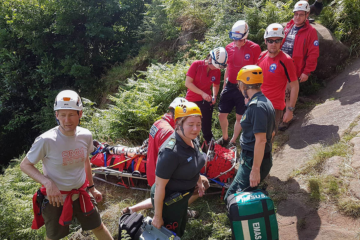 Derby Mountain Rescue Team was called out and 12 of the team’s volunteers, including three doctors, went to the scene. He was treated at the crag and given pain relief. An ambulance crew also joined the rescue team at the foot of the cliff.