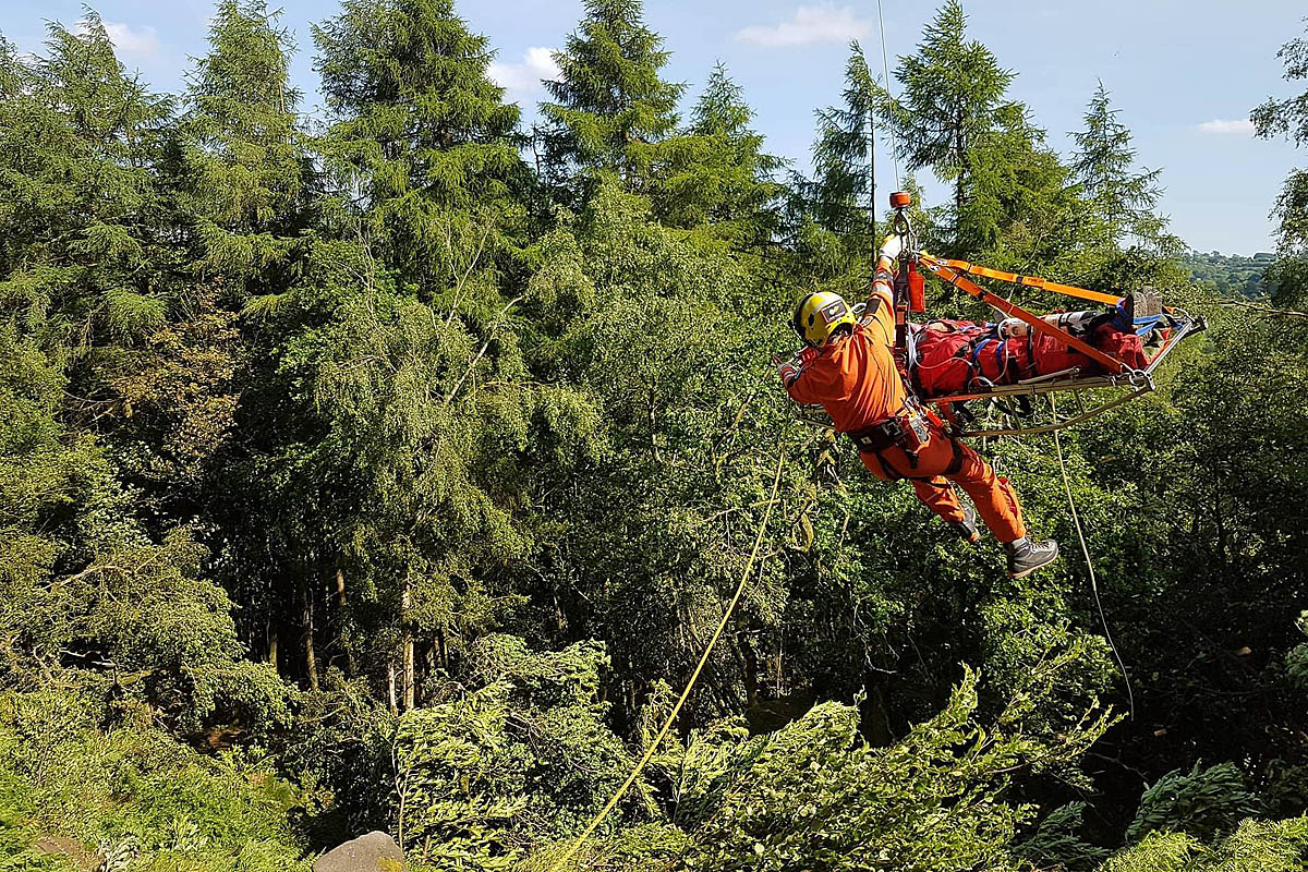 A Derby MRT spokesperson said, due to the nature of the casualty’s injuries and the difficult-to-reach location, a Coastguard helicopter with winching capabilities was called so the injured man could be lifted from where he was being treated, rather than being carried to the waiting ambulance, which would have been a difficult and time-consuming operation.
