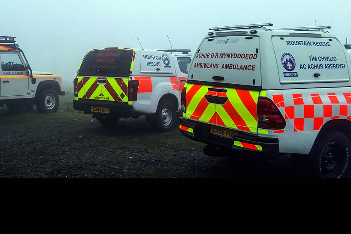 Team vehicles at the scene during the Cnicht rescue which involved stretchering the walker off the hill. Photo: Aberdyfi SRT