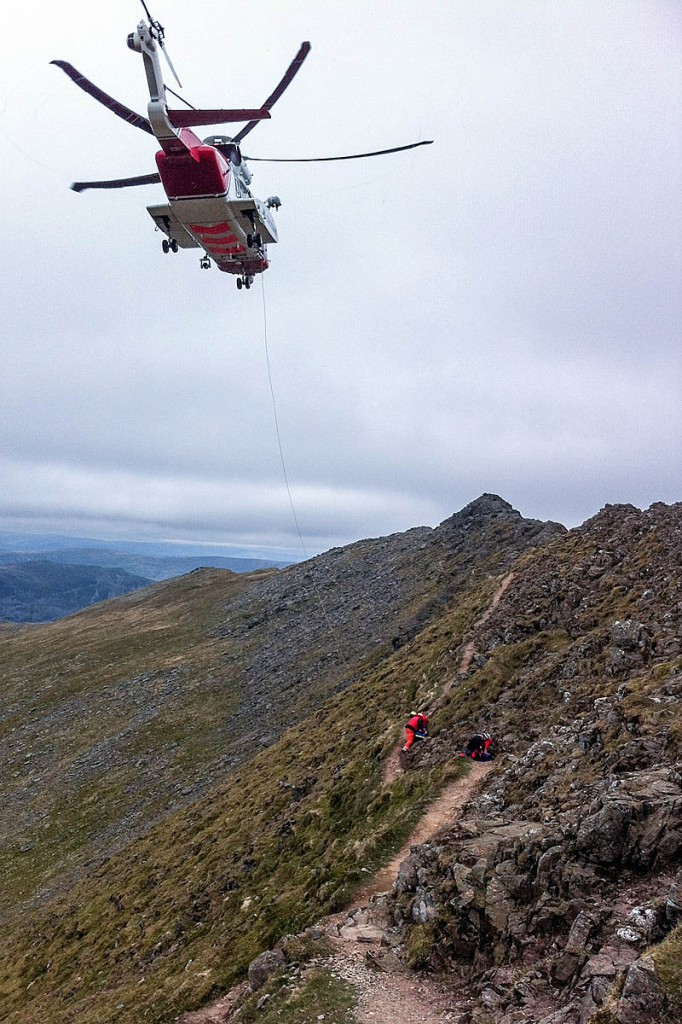 “We were on a ledge so we tried to make her as comfortable as possible, and called in the Patterdale Mountain Rescue Team and a search and rescue helicopter to assist us in getting her off Striding Edge.”