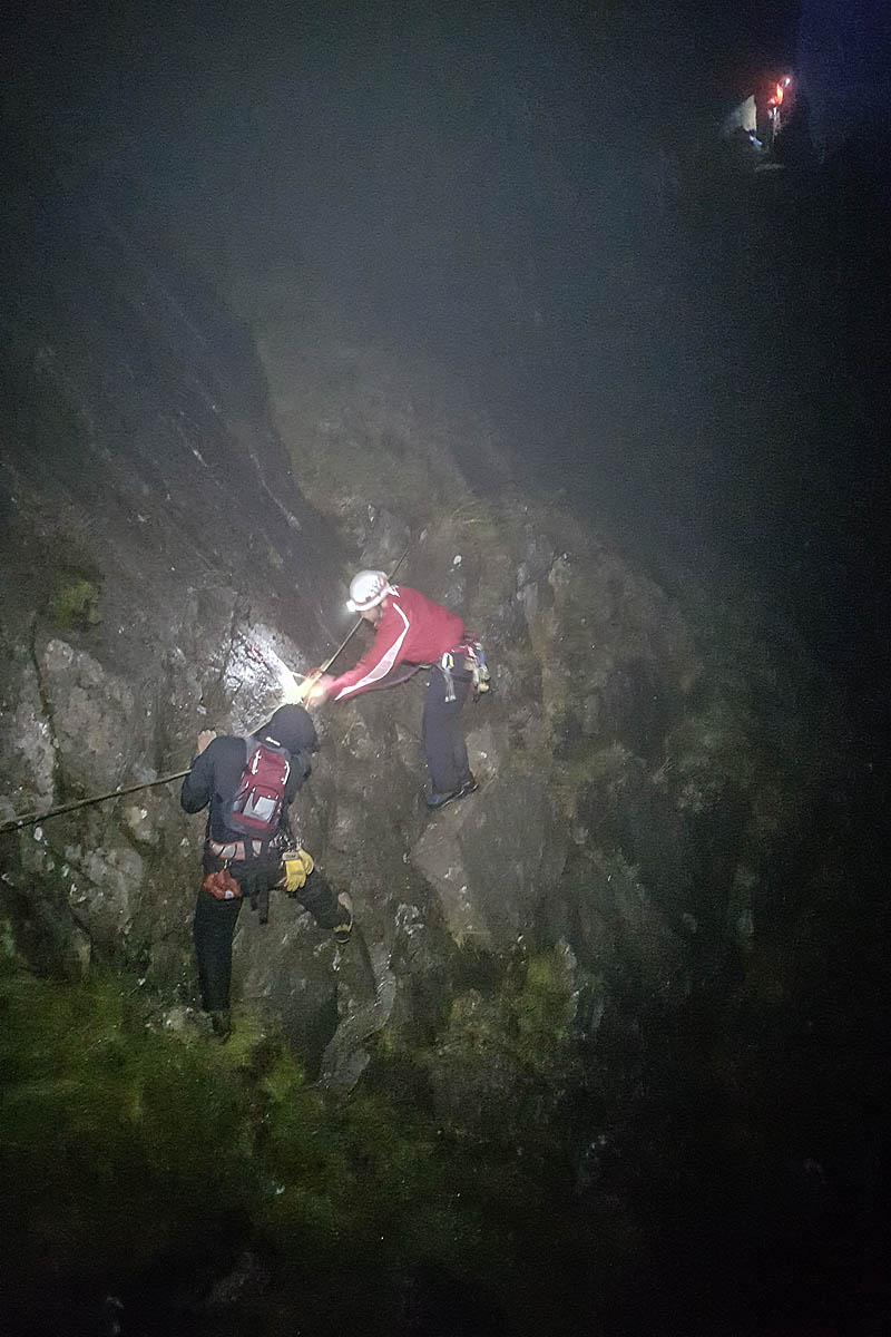 “A series of rope hand lines were established so that the three could be extricated to safe ground. They were all brought to Oggi Base for tea and hot food shortly after 11pm before being taken back to their car for their long drive back to Bedfordshire.