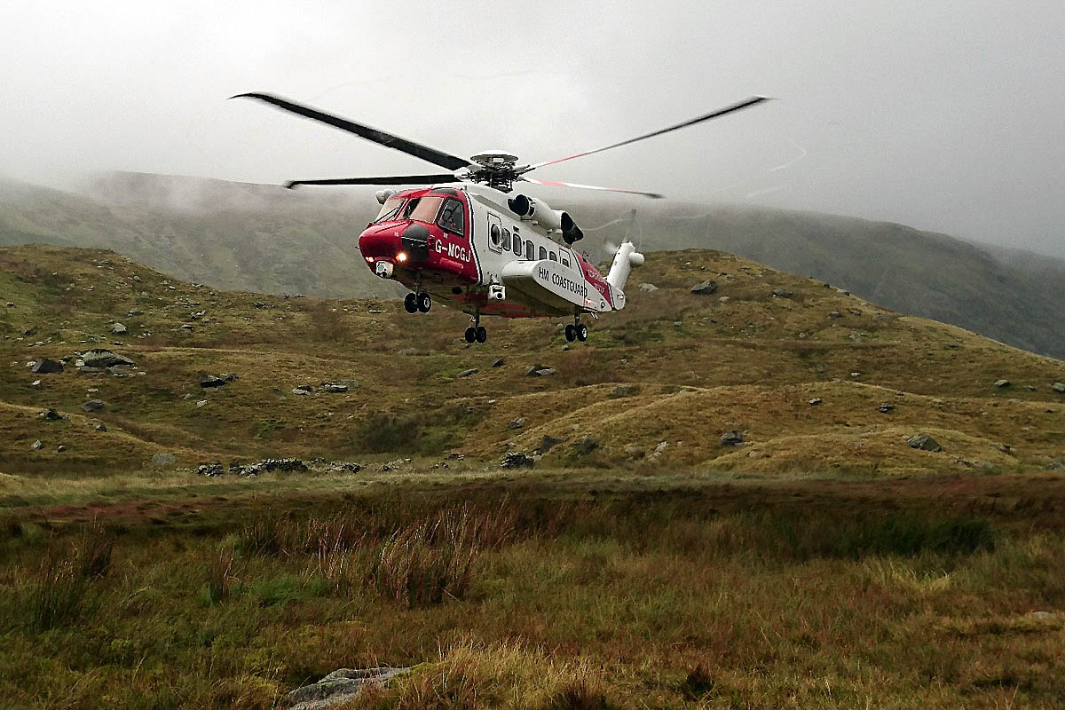 “Once at the scene, rescuers treated the lady and she was secured in a vacuum mattress to protect her neck. Rescue 936, the Caernarvon S-92, duly turned up after the casualty had been carried down to below the cloudbase.