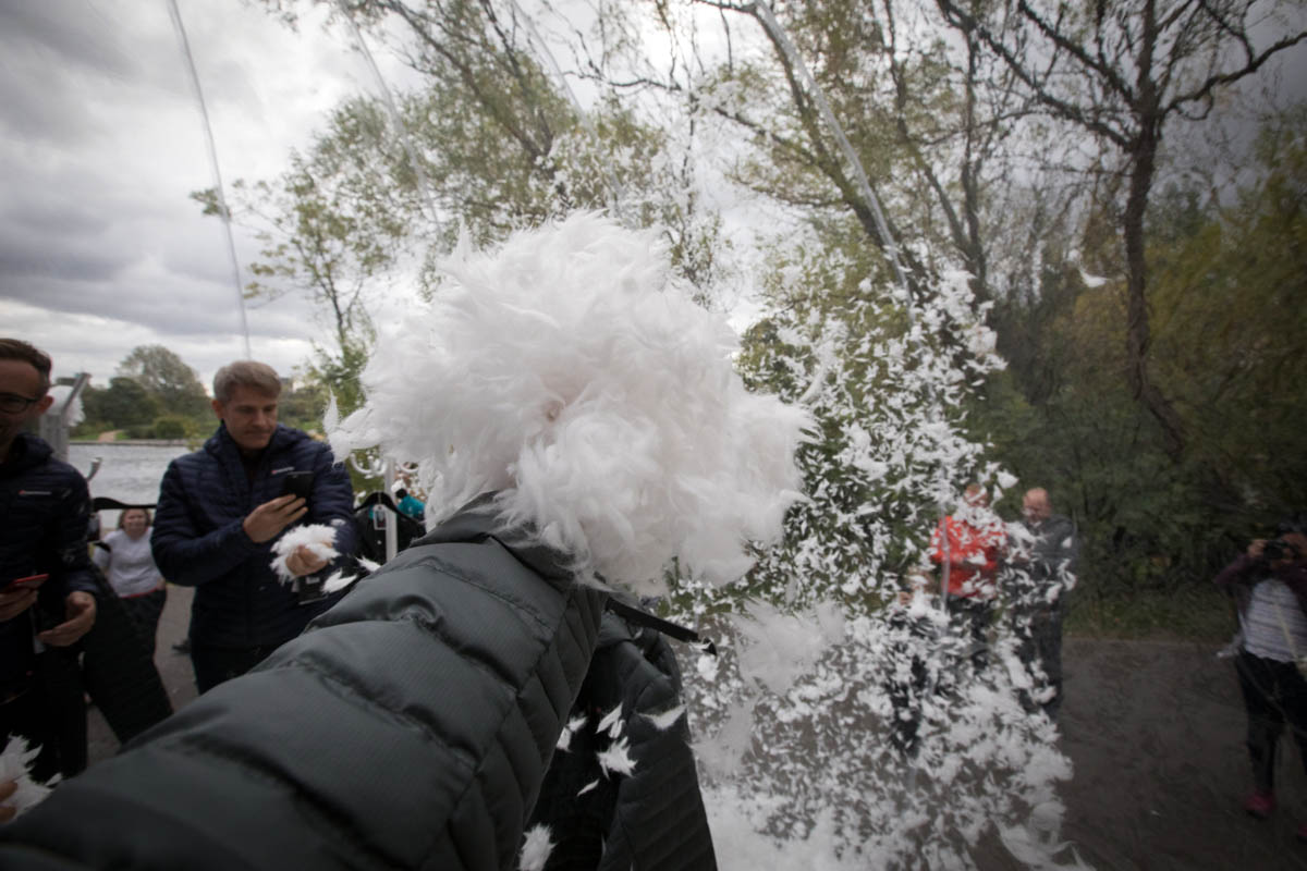 As the fans are turned on, the synthetic filling fills the interior of the globe. The ThermoPlume certainly has a very soft feel and could easily pass for feathers. Suitably clothed in Montane jackets and covered in PrimaLoft insulation, we emerge to baffled gazes from families passing by.