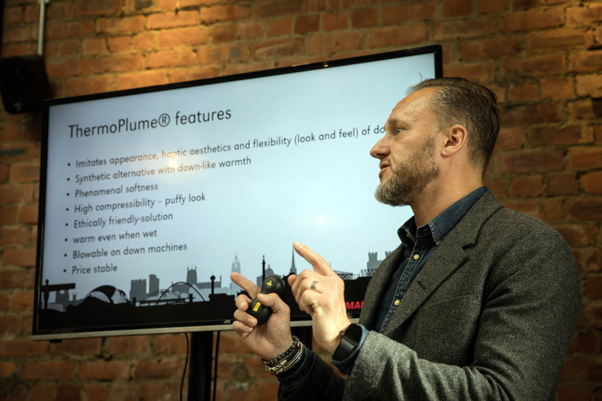 PrimaLoft’s European PR manager Florian Schneiderbanger had flown in to the event from Munich and his colleague Wim Neels, sales manager for the UK, Denmark and Benelux, joined him from his Belgium home to explain the advantages of the new product ingredient.