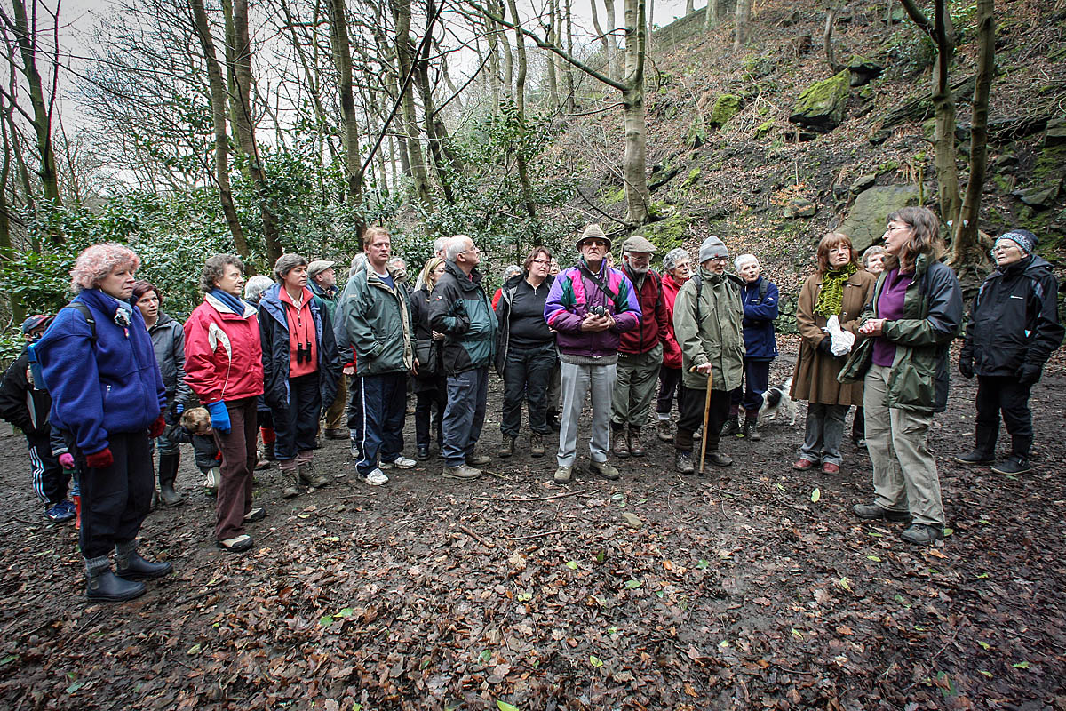 Kate Ashbrook, front right, joins fellow walkers in 2016 on a route linking three Walkers Are Welcome towns in West Yorkshire. Photo: Bob Smith/grough