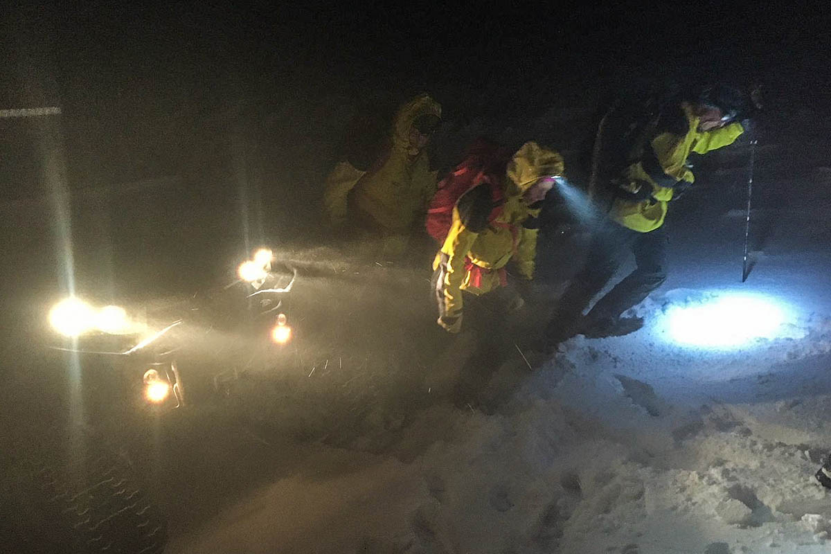 The rescuers fought snow and bad visibility to locate the group in the dark.