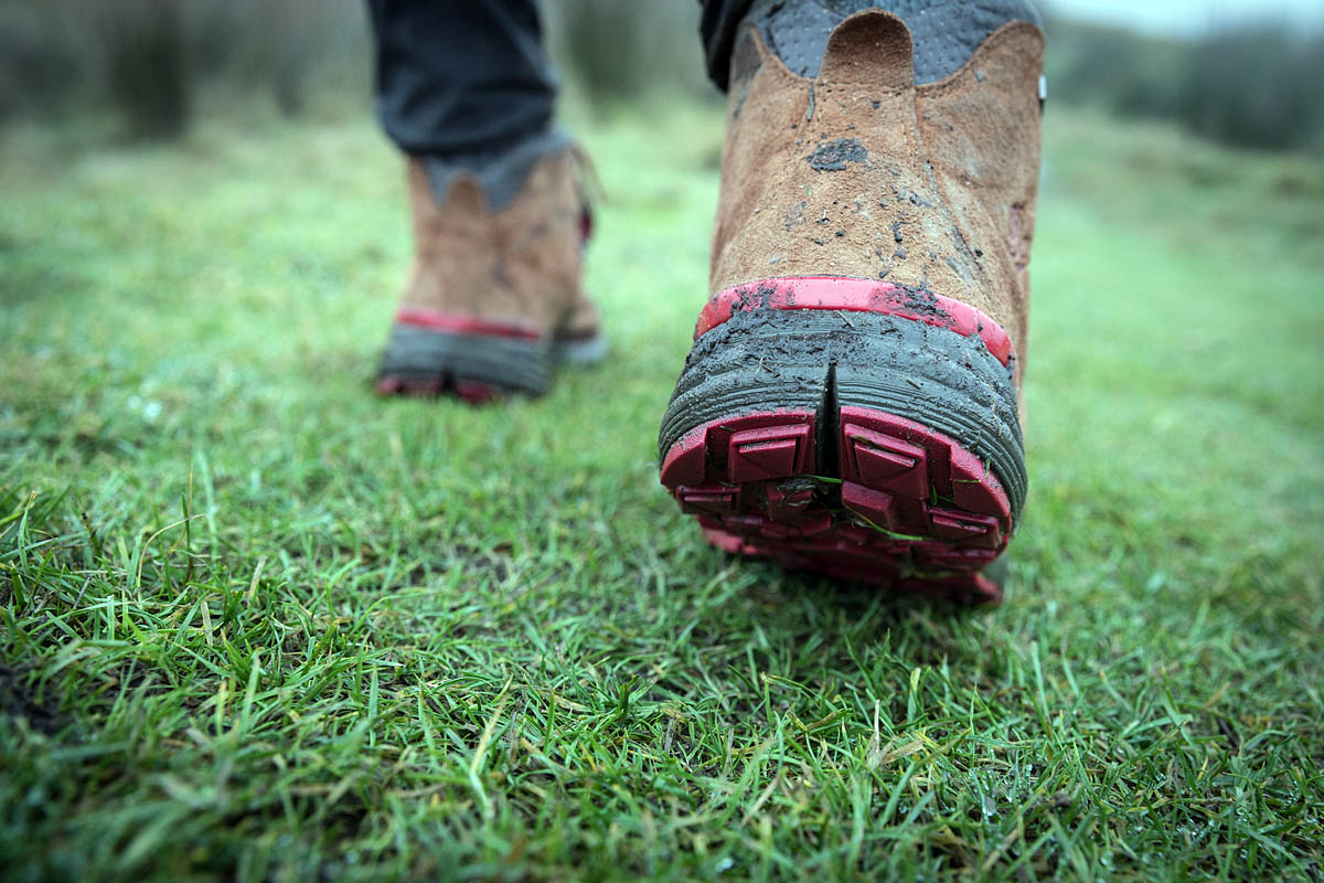 There’s a stiffened toe box, and the heel cup is also hardened, with a plastic strip just above the midsole giving extra protection. The boots are fairly wide at the forefoot area, with no feeling of the foot being cramped here. The laced-up boots held the foot well, with no heel lift uphill or sliding forward on downhill sections.