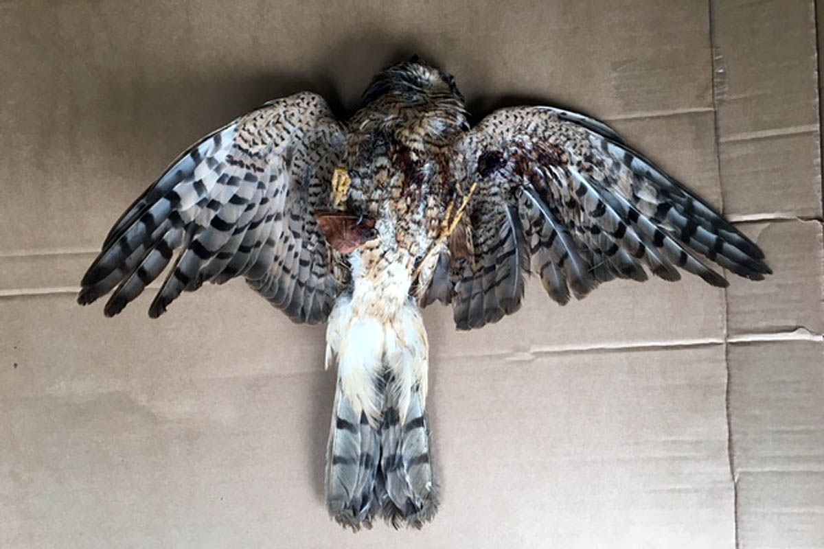 A member of the public found a dead sparrowhawk and subsequent tests revealed the bird had a piece of shot embedded in its body.