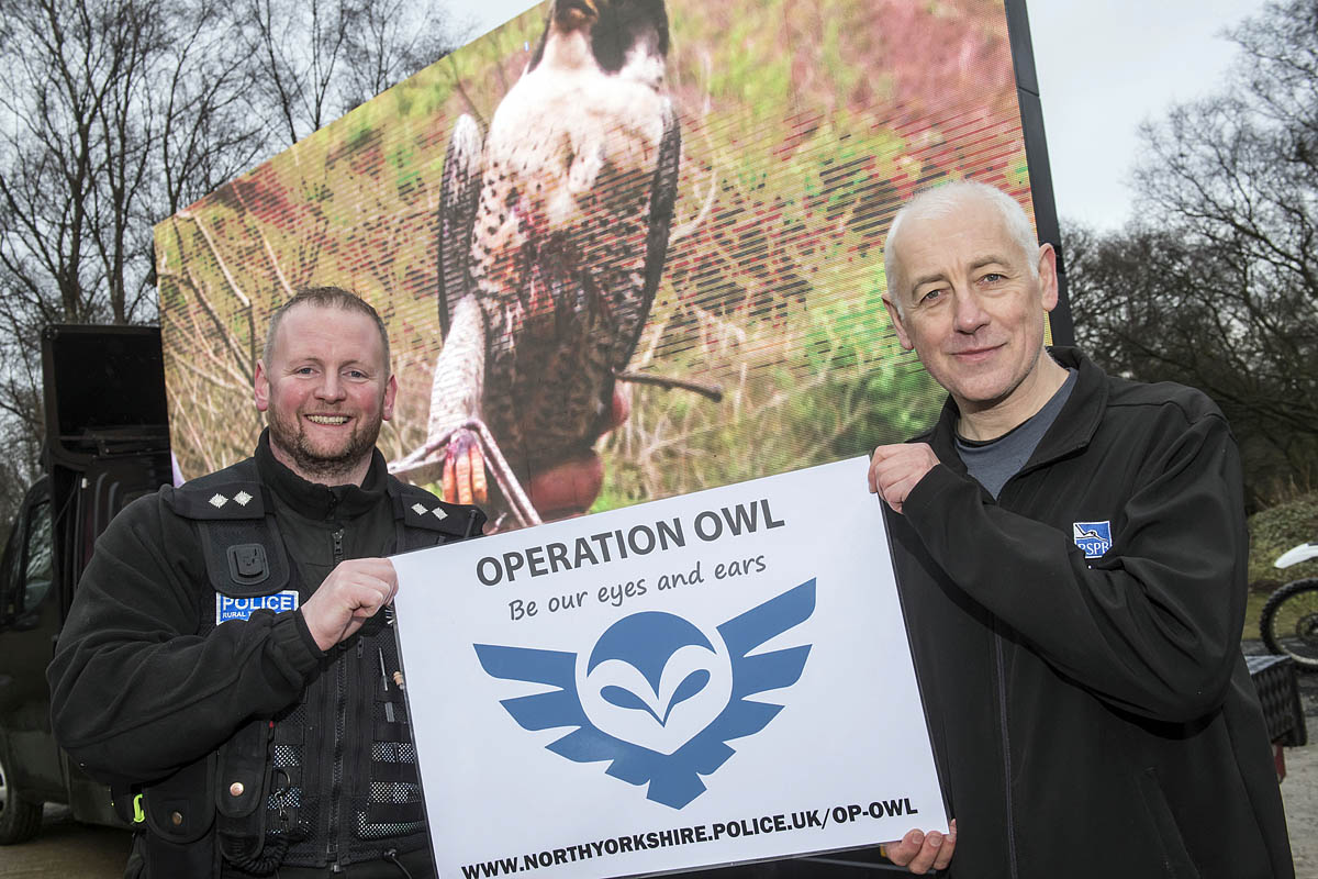 Sergeant Kevin Kelly and Guy Shorrock of the RSPB launch Operation Owl last month. Photo: North Yorkshire Police