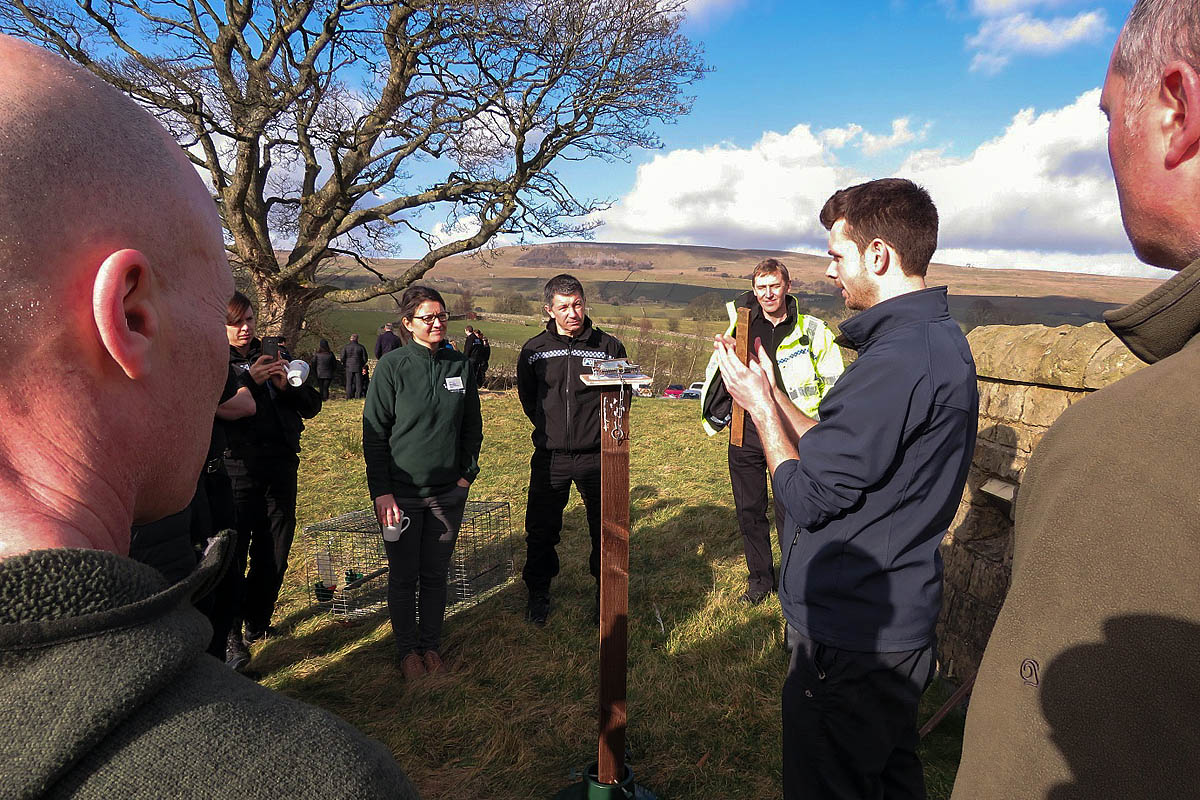 Howard Jones, RSPB investigations officer, gives police officers and national park staff an insight into illegal trapping methods at the wildlife crime seminar day in Bainbridge