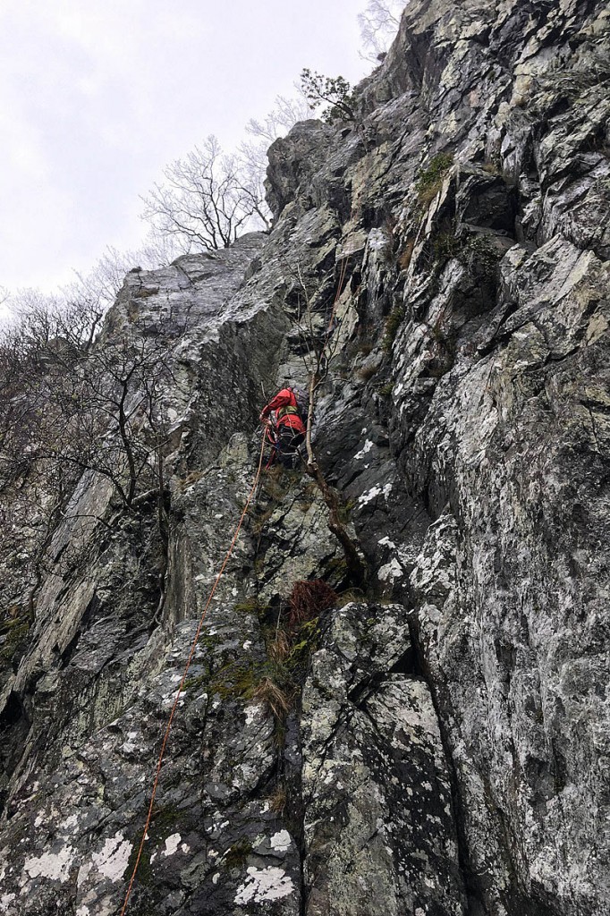 “Uninjured but cold and wet, the team responded with one vehicle and untangled the climber’s ropes from the top of the crag. Once released the climber could then self-rescue and continue to abseil to the bottom of the crag.”