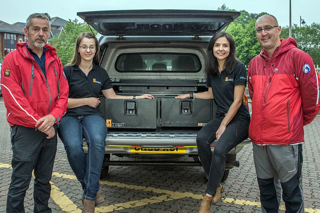 Police have given the team a Mitsubishi L200 vehicle. This has been given the familiar livery and blue lights of a mountain rescue vehicle and also has an added extra to make it even more useful. Gearmate of Alcester in Warwickshire heard about the fire and destruction and offered to fit a team vehicle with a donated full drawer storage system and this has now been fitted into the L200.