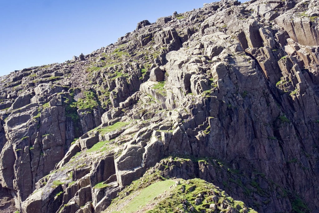Broad Stand is the shortest ascent and descent route to Scafell from the top of Mickledore, between England’s highest and second-highest peaks, but is difficult terrain for those not used to scrambling.