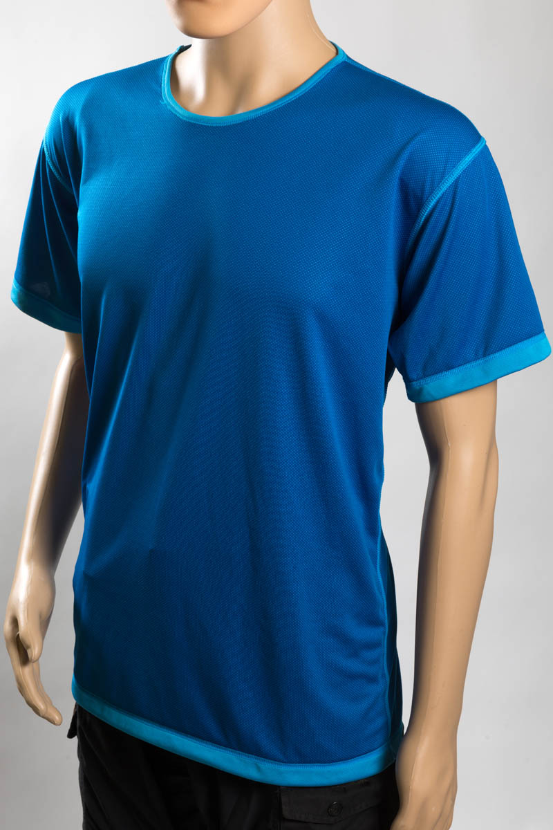 On hot days and when working hard when you benefit from its cooling properties, the top is worn with the smooth side inwards. This helps keep some moisture near the body to reduce temperature. When you want a little more warmth, you turn it inside out and wear the patterned material next to your skin, helping to direct more perspiration out away from the body.