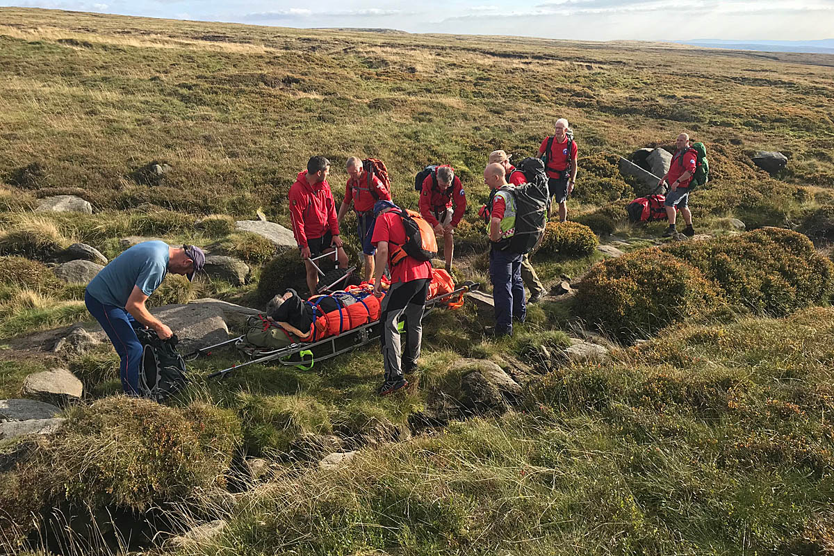 The walker was treated at the scene and then stretchered to the team’s ambulance on Glossop Low, about 2km to the west of the incident.