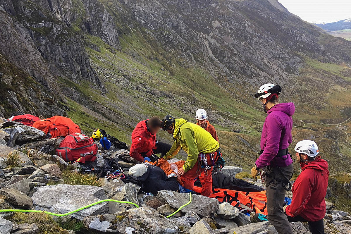 Chris Lloyd of the Ogwen Valley team said: “Amazingly, the young man had survived the fall, was conscious but had received facial injuries and was in great pain all over.