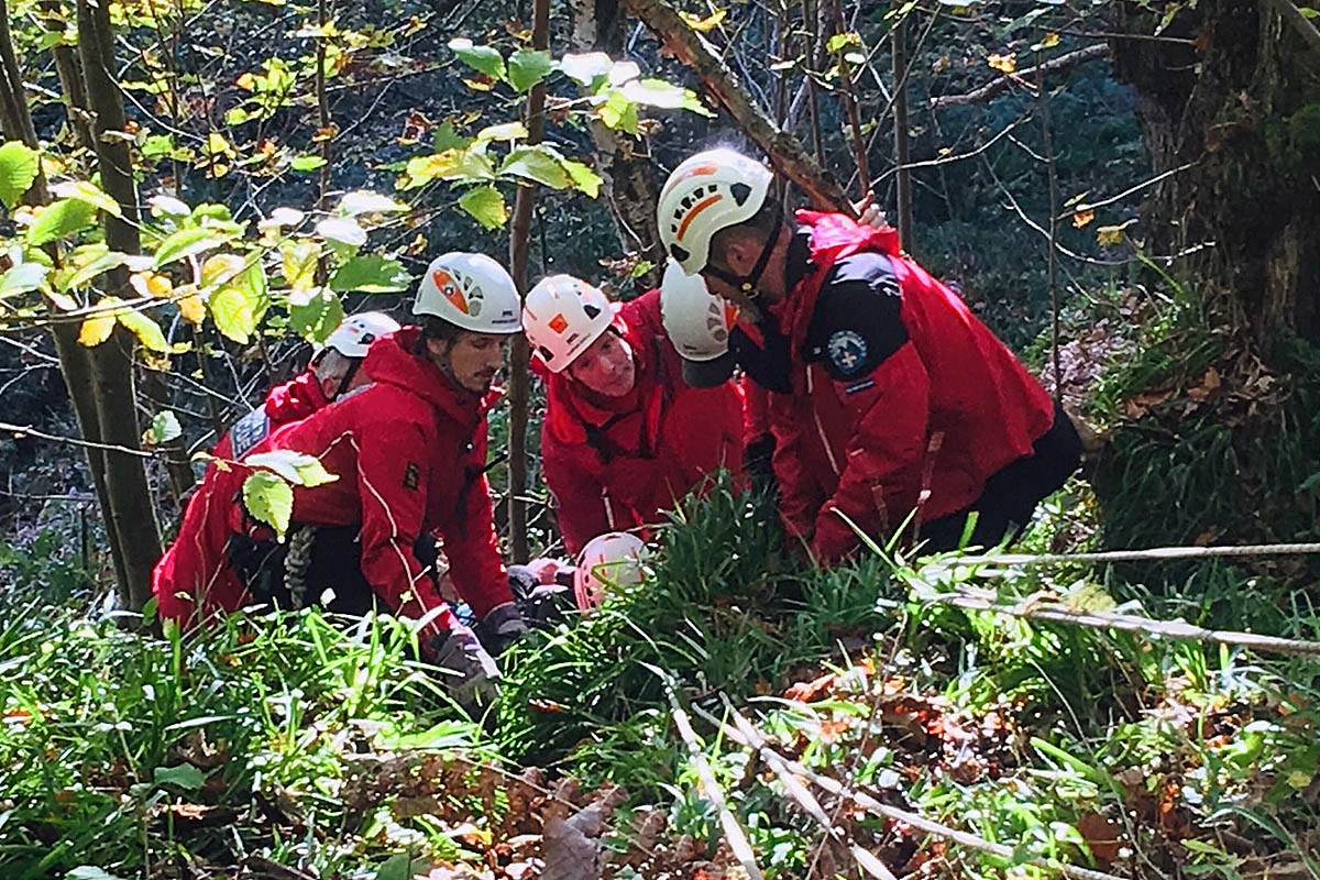 “The casualty was then placed on a stretcher and using a rope system, hauled back up the steep slope to the track and handed over to the ambulance crew.”