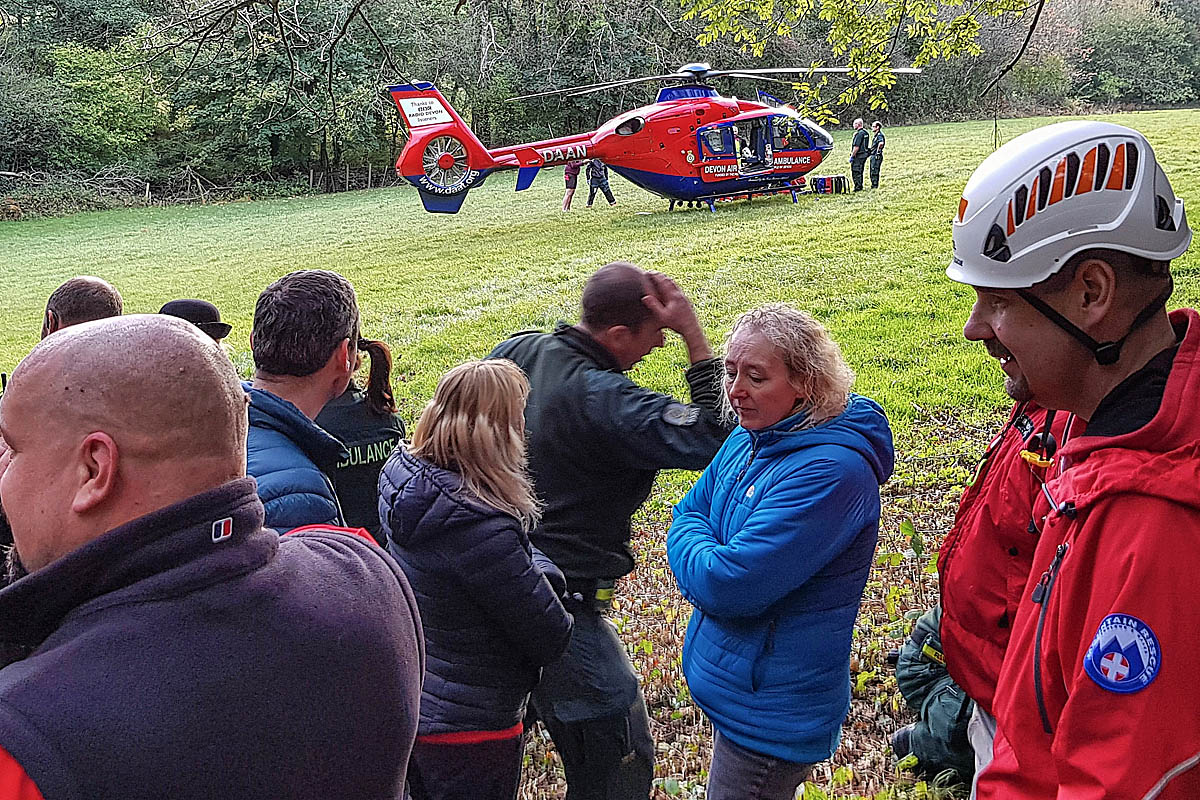 The team’s volunteers joined doctors, ambulance staff and police at the scene. The Devon Air Ambulance also flew to the site.