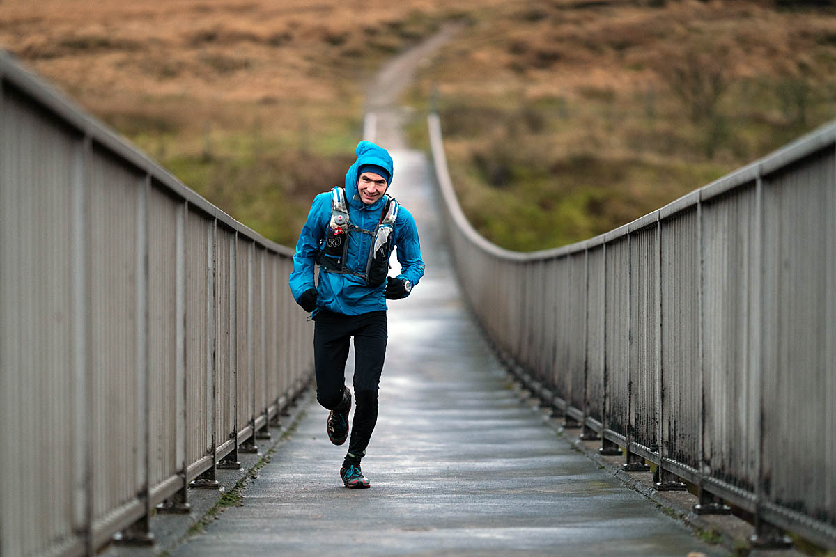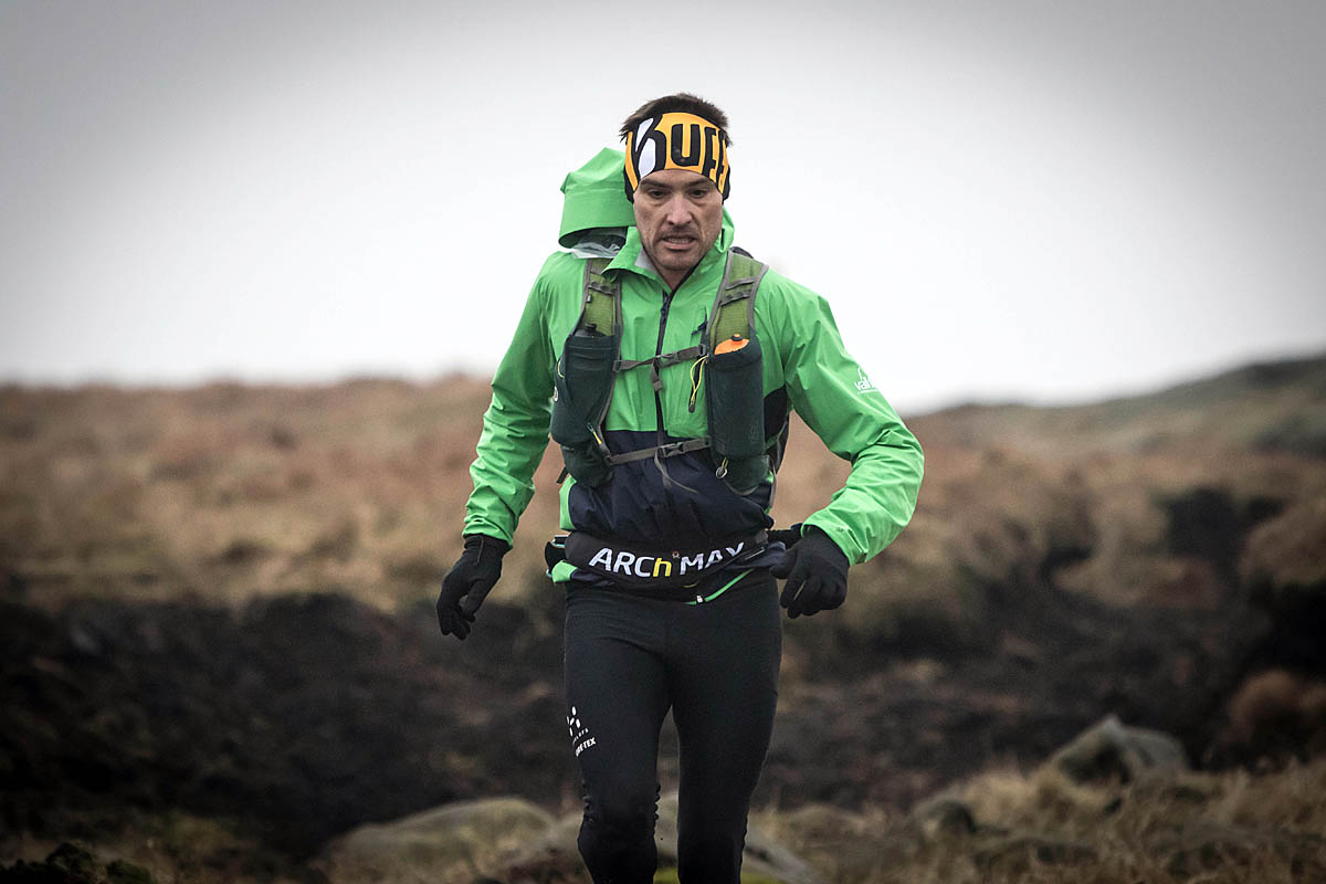 Jim Mann crosses the M62 on his way to victory in the Montane Spine Challenger. Photo: Harsharn Gill