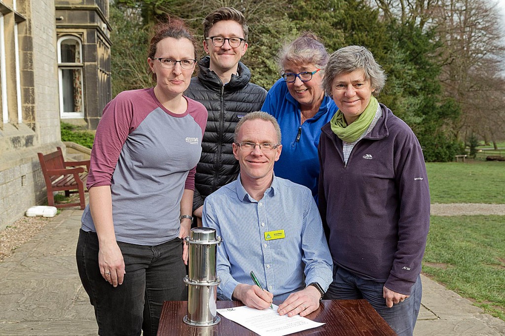 Signing the pledge with James Blake are, from left, Emma Marrington, senior rural policy campaigner for CPRE; Tom Platt from the Ramblers; Janette Ward, chair of the Campaign for National Parks; and Kate Ashbrook, general secretary of the Open Spaces Society
